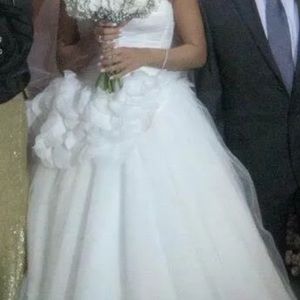 @nyuen71 hi there its in excellent condition. Cleaned after the wedding and worn once. No tear and stains. I adjusted it from the sides can’t remember exactly how many inches it was altered from each wide