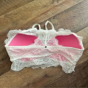 White Victoria's Secret PINK Eyelash Lace High Neck Push Up Bralette Sz Medium
