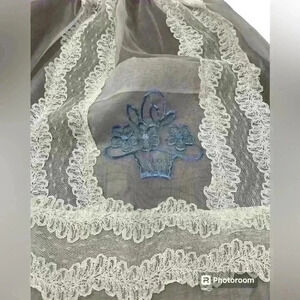 White Vintage Sheer Half Apron Lace Trim Entertaining Mid Century Hostess