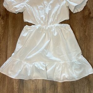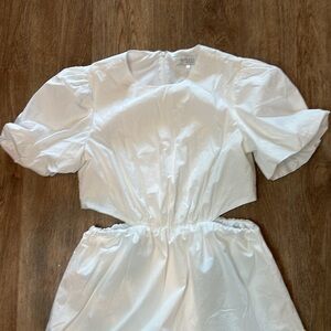 White WAYF Puff Sleeve Cotton Cut-out Mini Dress, M