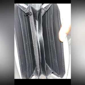 Inside includes 4 pockets, 1 being a coin holder. Holds 12 cards