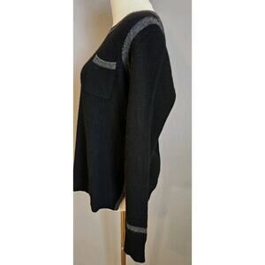 Luxurious and timeless, this White + Warren sweater is crafted from pure cashmere. Black body with contrasting gray trim along the neckline, sleeves, and hem for a chic, modern touch. Soft, warm, and versatile—perfect for layering or wearing on its own.