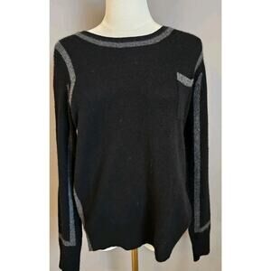 White + Warren 100% Cashmere Black Gray Trim Crewneck Sweater Size M Racing F1