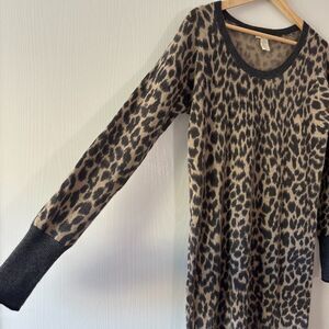 White + Warren 100% Cashmere Brown Leopard Print Sweater Dress Size XS