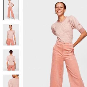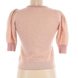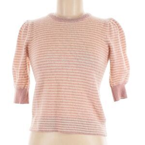 White + Warren 100% Cashmere Puff Sleeve Striped Crewneck Soft Pink White Size M