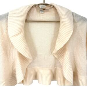 White & Warren 100% Cashmere Sweater Open Cardigan Ruffle Crean Size Medium