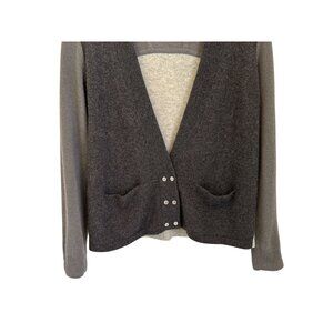White + Warren 100% Cashmere Two-Tone Gray Cardigan Sweater With Snap Buttons