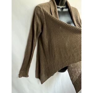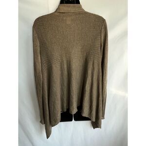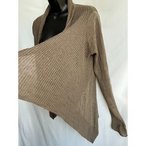 White + Warren 100% Linen Brown Open Front Cardigan Sweater M Lagenlook Basic
