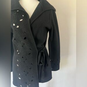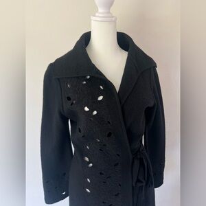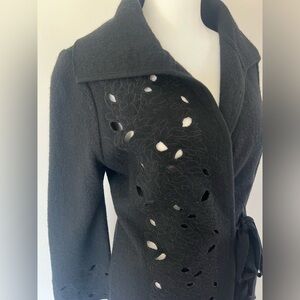 White + Warren Black 100% Wool Wrap Front Cutout Cardigan Sweater Size Small