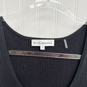 White + Warren Black Linen Knit Ribbed Scoop Neck Tank Top Vest Size Small