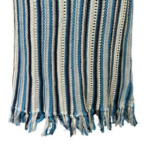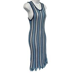 White + Warren Blue White Stripe Mercerized Cotton Fringe Midi Dress XS NEW Tags