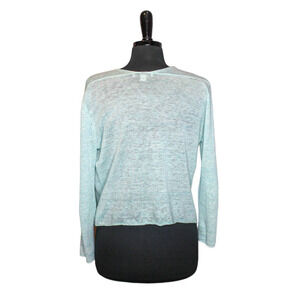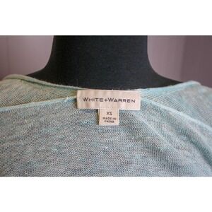 White +Warren Cardigan Sweater Open Front Crop Trapeze Green 100% Linen Size XS
