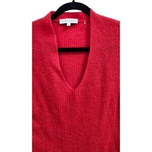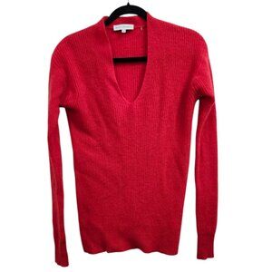 White + Warren - Cashmere Ribbed V Neck Sweater in Auburn Red Size S