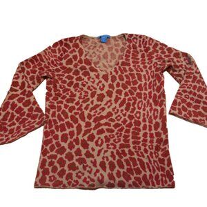 White + Warren Cashmere Sweater Animal Print Tan Red Women Size S - SEE DETAILS