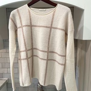 Cream with Tan stripes on Front, Solid Cream color on Sleeves and back.