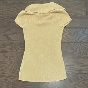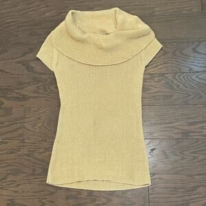 White + Warren Gold Metalic Silk/Angora Cowl Neck Sleeveless Sweater Size Small
