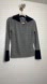 White + Warren Gray and Black V-Neck Collar Cashmere Sweater. Super soft and warm fluffy cozy. Black at cuffs end of sleeve and collar. Luxury, elevated. Size small.