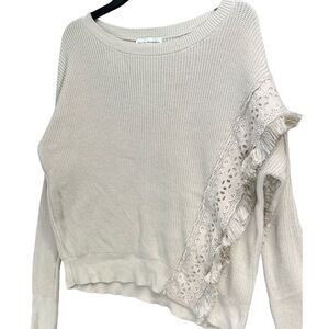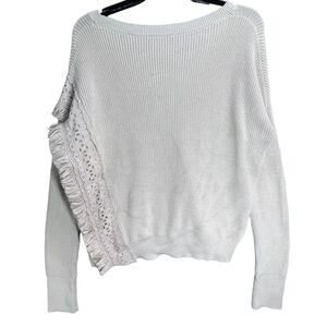 White + Warren Knit Sweater Womens M Beige Lace Fringe Pullover Romantic Boho