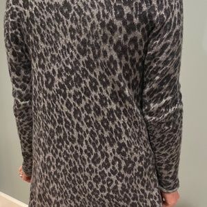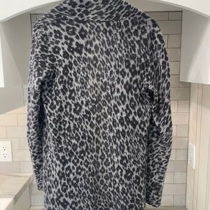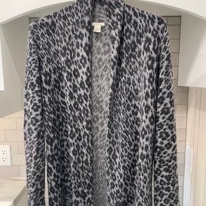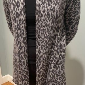 Leopard Cashmere Trapeze Cardigan, fingertip length open sweater, timeless, so soft & warm. Dress it up or down. Black & Grey leopard print