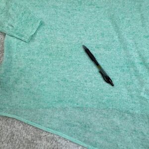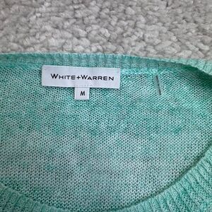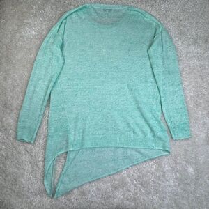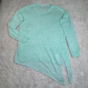 White + Warren Linen Asymmetrical Tunic Slit Sweater Green