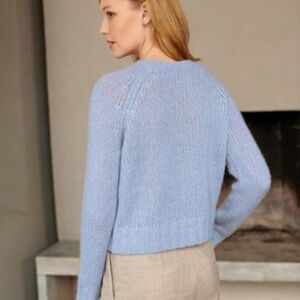 White + Warren Lofty Cashmere Silk Shrunken Sweater -Light Blue Marl - MEDIUM