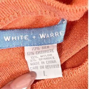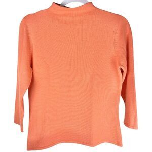 White + Warren Orange 3/4 Sleeve Mock Neck Cashmere Blend Sweater womens Large