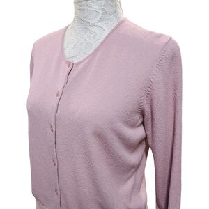 White + Warren Pink Knit Rayon Nylon Button Down Sweater Cardigan Size Large