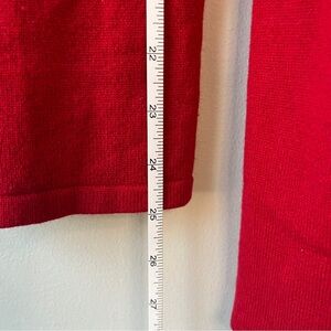 Beautiful White and Warren cranberry red long sleeve knit sweater in a luxurious silk and cashmere blend. The faux fur trim around the neckline makes this the perfect festive holiday sweater for your Thanksgiving dinner or your Christmas party! Pair with a high waisted skirt and boots for an easy, classy holiday look!