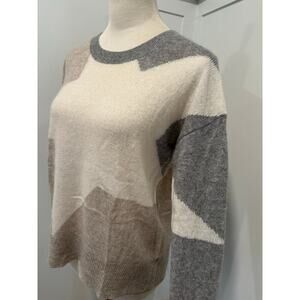 Obsessed with the star pattern. 100% cashmere. Very soft and lighter weight but warm. Perfect neutral colors.