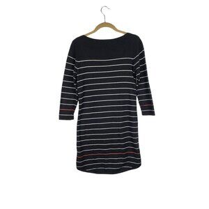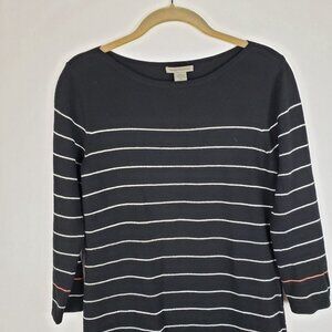 White & Warren Sweater Dress Black Striped Knit Cotton Blend Womens Size Small