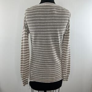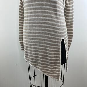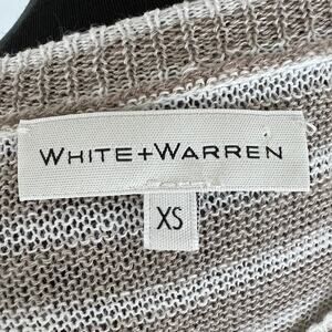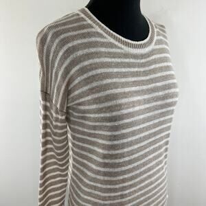 White + Warren Tan White Striped Linen Long Sleeve Round Neck Tunic Size XS
