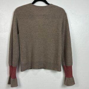 White + Warren Taupe Cashmere V-Neck Bell Sleeve Sweater Size XS