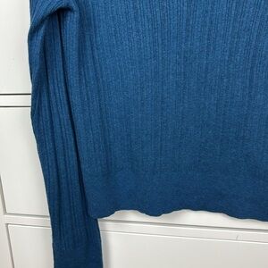 Elegant teal sweater with ribbed texture and classic collar. Ideal for versatile styling.