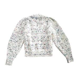 WHITE + WARREN WATERCOLOR ALPACA KNIT V-NECK PUFF SLEEVE CARDIGAN SWEATER XS
