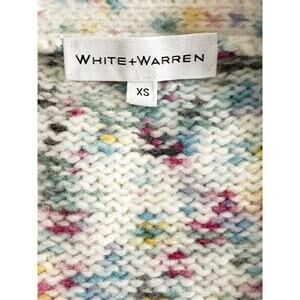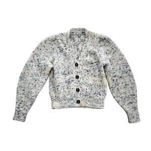 White + Warren Watercolor Alpaca Knit V-Neck Puff Sleeve Cardigan Sweater XS