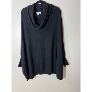 White + Warren Women Black Cashmere Cowl Neck Poncho Dolman Style Sweater M/