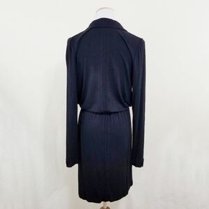 White + Warren button down long sleeve collared dress. Solid black jersey knit. Button cuffs. Drawstring waist. Super comfy!