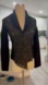 black wool jacket with a unique perforated leather overlay It features details like zip cuffs.