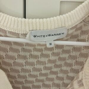 White + Warren lightly worn "Linen Cotton Blend Striped Split Neck T-shirt"