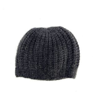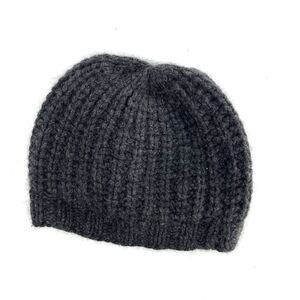 Cashmere Gray Plush Rib Beanie Winter Outdoor Knit Crochet