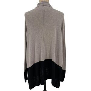 White + Warren Open Waterfall Front Long Sleeve Cardigan Sweater Taupe Small