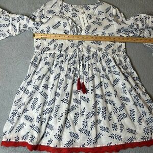 White Waves Top Womens Small Medium White Lace Trim Split V Neck Tie Up Tassel Top NEW