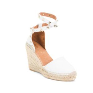 White Wedge Sandals with Studded Ankle Strap