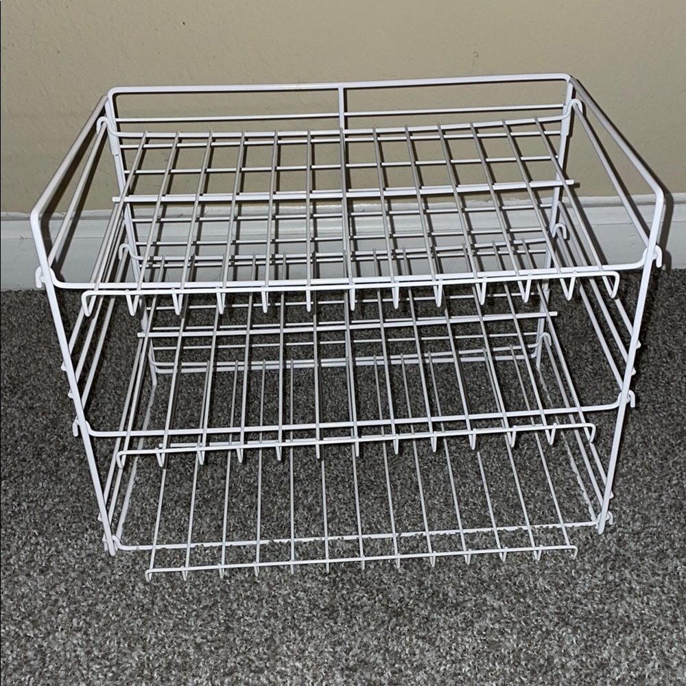 Sturdy wire rack. Two-tier design. Ideal for organizing.