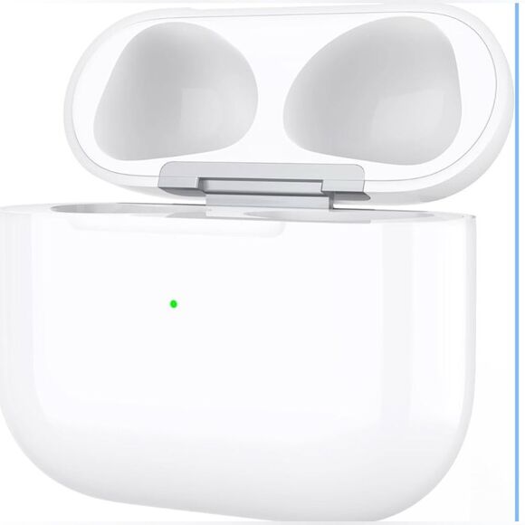 Sleek white wireless earbuds charging case. Compact and stylish design.
