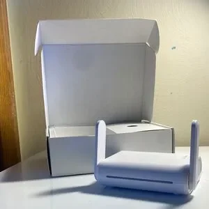 Enhance your network with this sleek white wireless router. Designed for optimal performance and reliability.