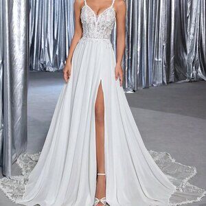 White Women's Elegant Luxurious Embroidery Wedding dress