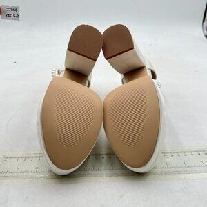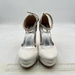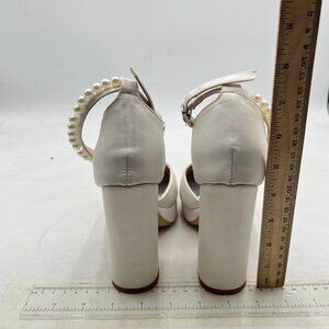 White Women's Pearls Ankle Strap Block Heels Platform Closed Toe Evening Dress Party Shoes