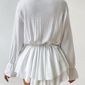 White Women's Ruffle Trim Flounce Sleeve Cover Up Dress