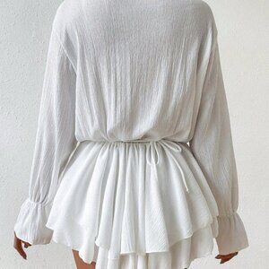 White Women's Ruffle Trim Flounce Sleeve Cover Up Dress Without Bikini